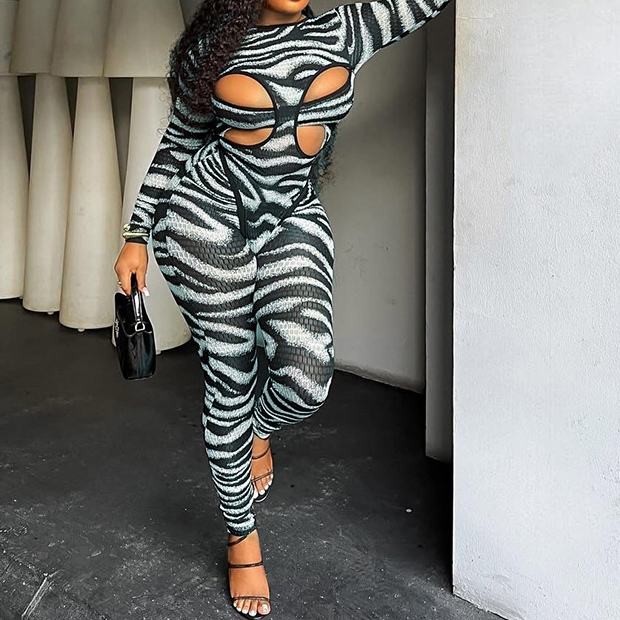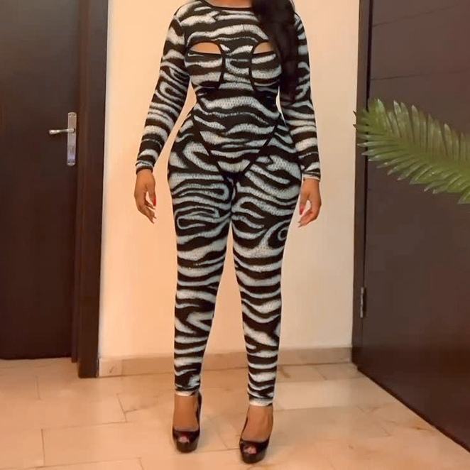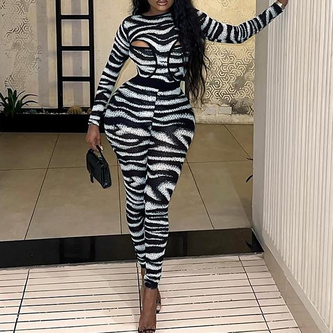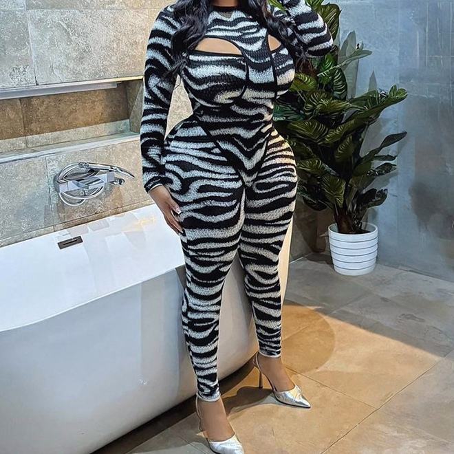 ชุดจั๊มสูทลายม้าลายผูกเชือกสำหรับผู้หญิง ฤดูใบไม้ร่วง/ฤดูหนาว พร้อมเลกกิ้ง ชุด 2 ชิ้น แฟชั่น