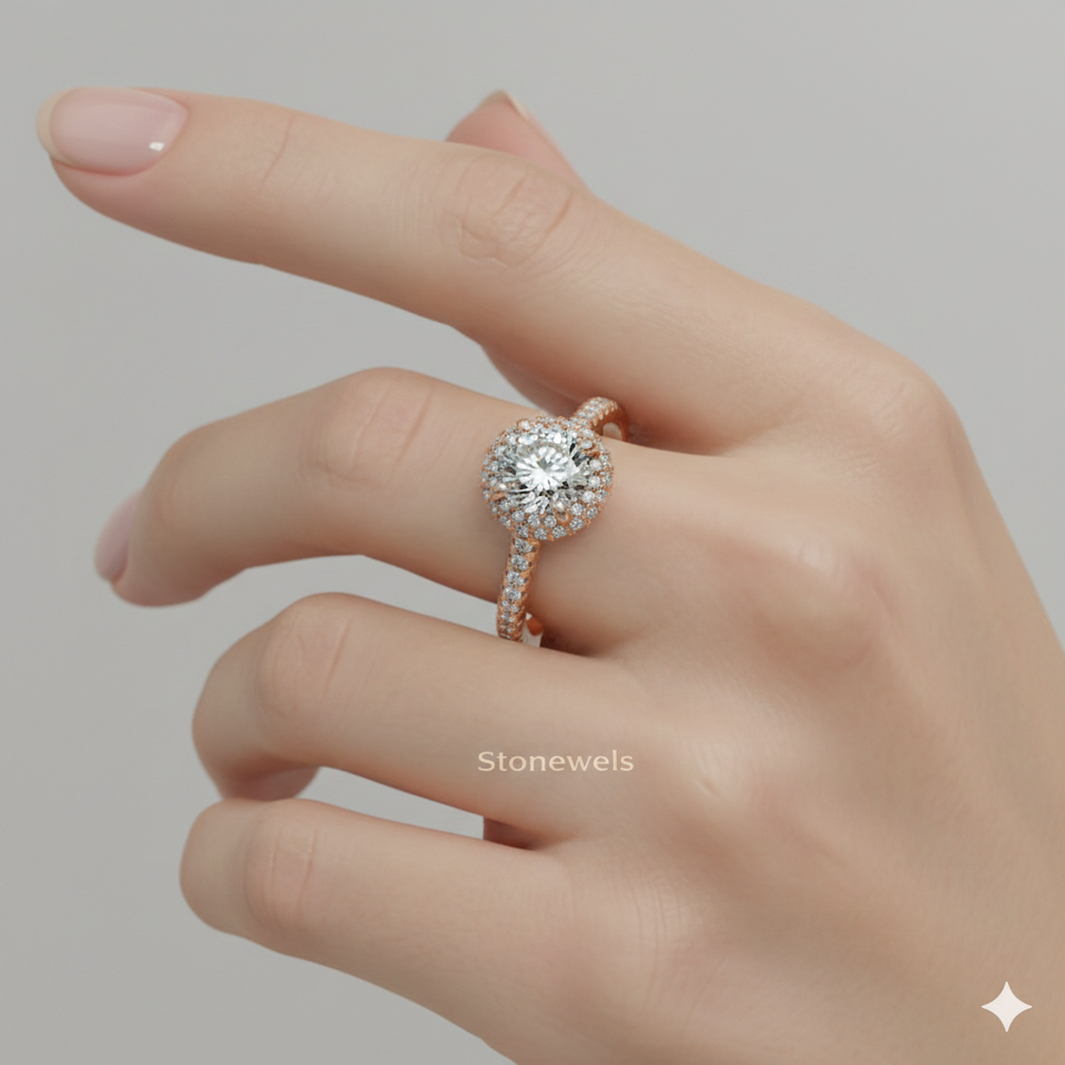 หมายเลขรุ่น:Falling Edge Pavé Diamond Halo Ring