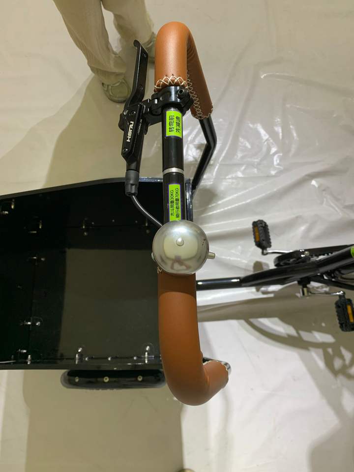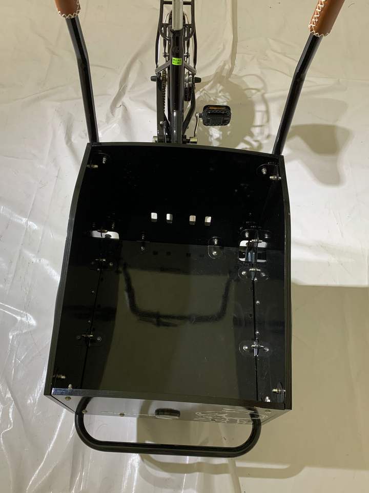 จักรยานบรรทุกของสำหรับครอบครัว โครงเหล็ก พร้อมกล่องไม้สำหรับเด็ก สีดำ