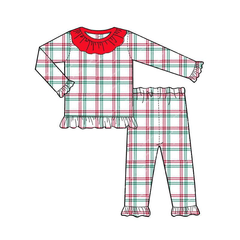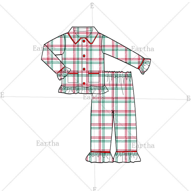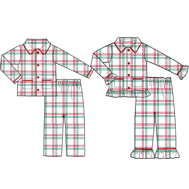 ชุดนอนคริสต์มาสสำหรับครอบครัว ชุดนอนผ้าฝ้ายลายสก็อตสำหรับเด็ก ชุดนอนเด็กผู้หญิงสำหรับฤดูหนาว