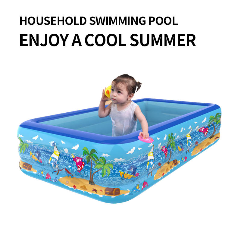 สระว่ายน้ำเป่าลมลายมหาสมุทรสำหรับครอบครัว หลายขนาด ผลิตภัณฑ์กลางแจ้ง สระว่ายน้ำเป่าลม 3 ชั้น