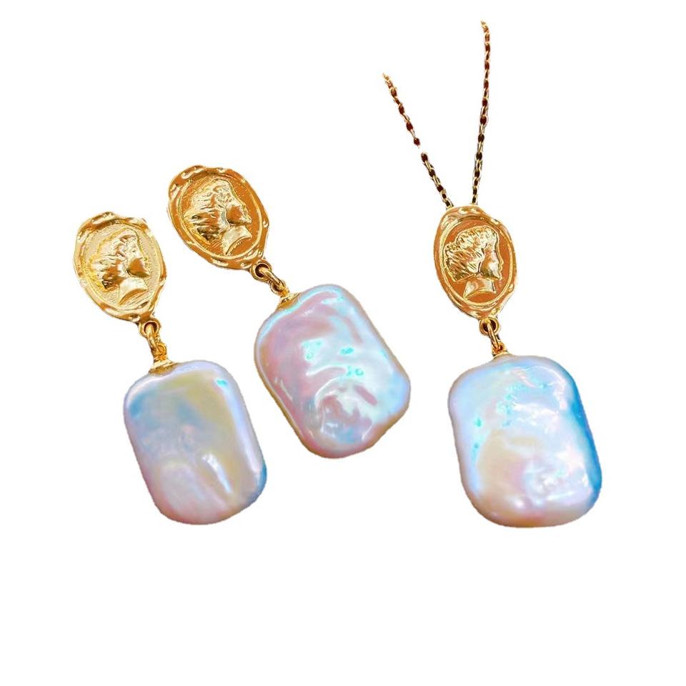 แบรนด์ดังสร้อยคอไข่มุกน้ำจืดสีขาวห้อยต่างหูและสร้อยคอเครื่องประดับแฟชั่น
