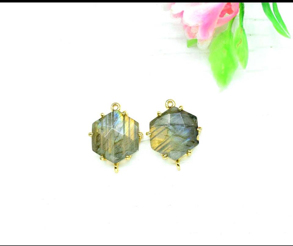 HARI OM CREATIONS แบรนด์ดัง จี้รูปหกเหลี่ยมขนาด 10 มม. เงินแท้ชุบทอง ประดับด้วยลาลีมาร์ ฝังแบบ Bezel ทำด้วยมือ