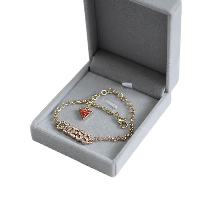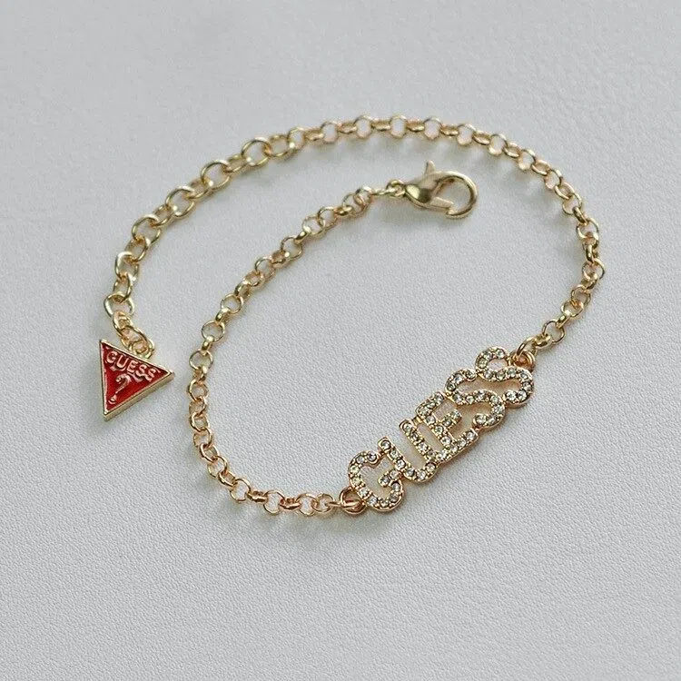 เครื่องประดับดีไซเนอร์ชื่อดังสำหรับผู้หญิง ชุบทอง 18K ประดับเพชร ตัวอักษรสำหรับสร้อยข้อมือแบบโซ่ Guess แฟชั่น วัสดุสแตนเลส