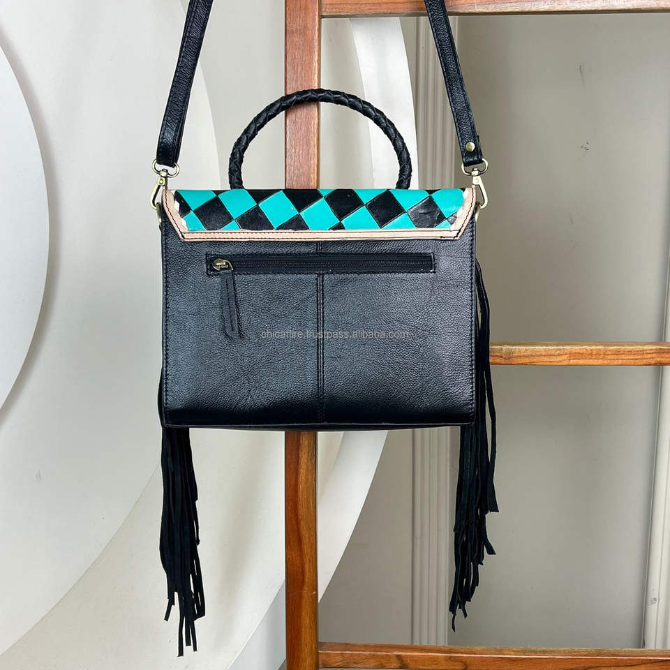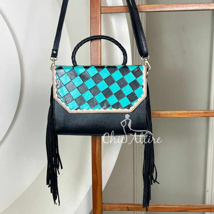 Product name:Hand Tooled Genuine Checkered Leather Crossbody Bag