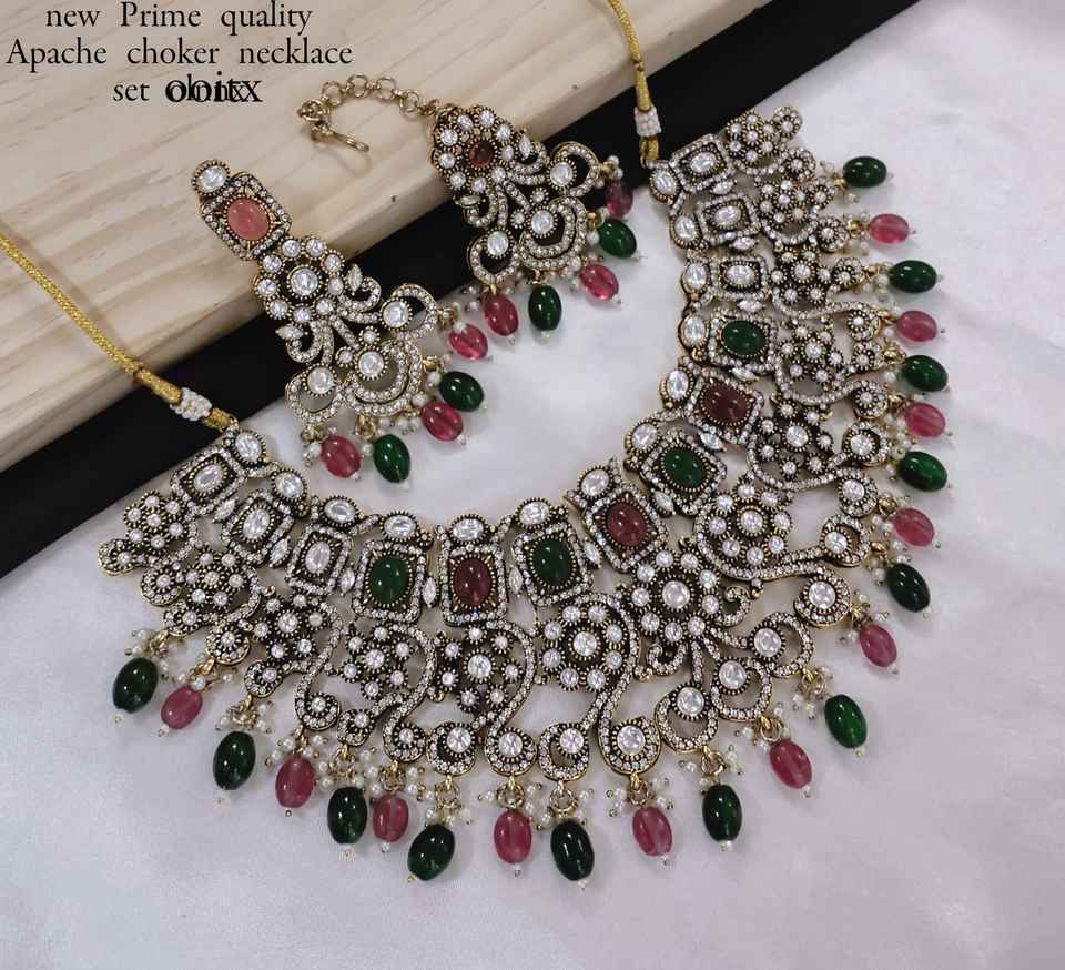 Jaypuri สร้อยคอหินรูปไข่ทรงสี่เหลี่ยมพร้อมชุดต่างหูคุณภาพดีเยี่ยมจากอินเดีย