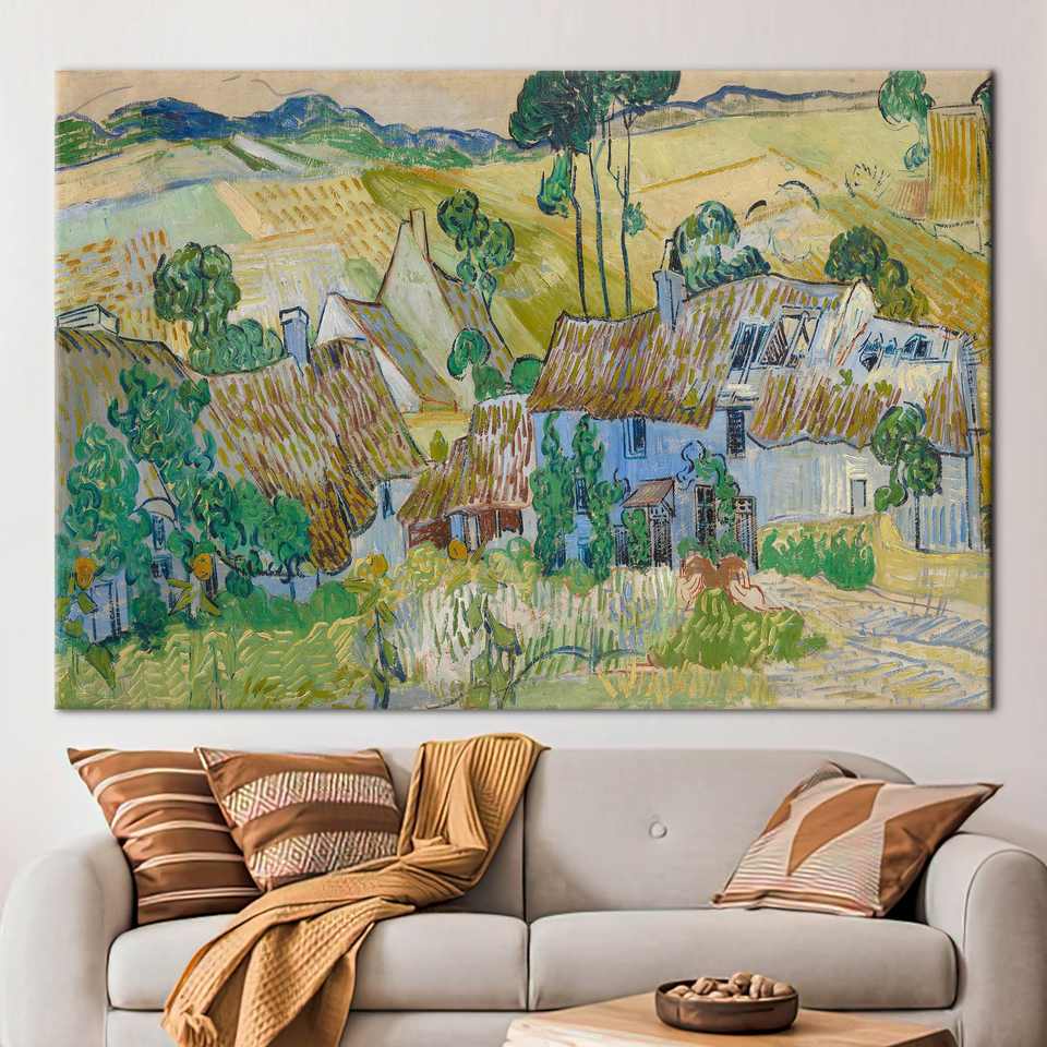 ภาพพิมพ์บนผ้าใบวิวหมู่บ้านของแวนโก๊ะที่มีชื่อเสียง - งานศิลปะติดผนังแบบจำลอง,1P:Gallery Wrapped