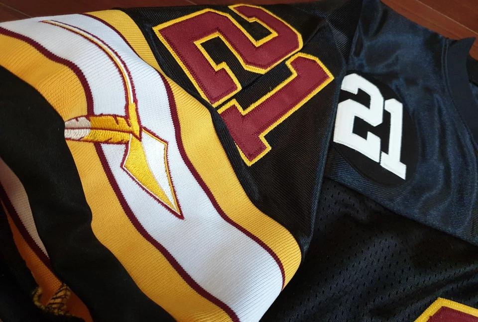 เสื้อเจอร์ซีย์แฟนฟุตบอลป้ายใหม่วอชิงตันเรดสกินส์ #21 SEAN Taylor แผ่นปะคู่เย็บสีดำสำหรับผู้ชาย