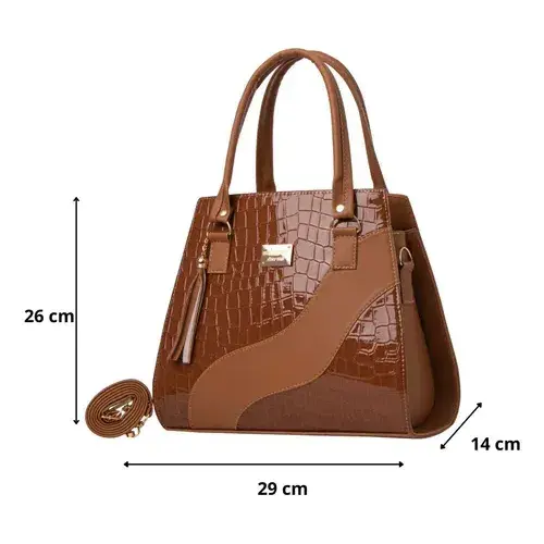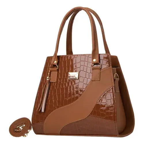 Fana Marian Women's Camel Color Handled Bag Unique Cross-Style Zipper Button Closure Featuring PVC Polyester Felt Fabric Lining