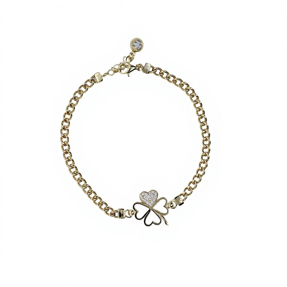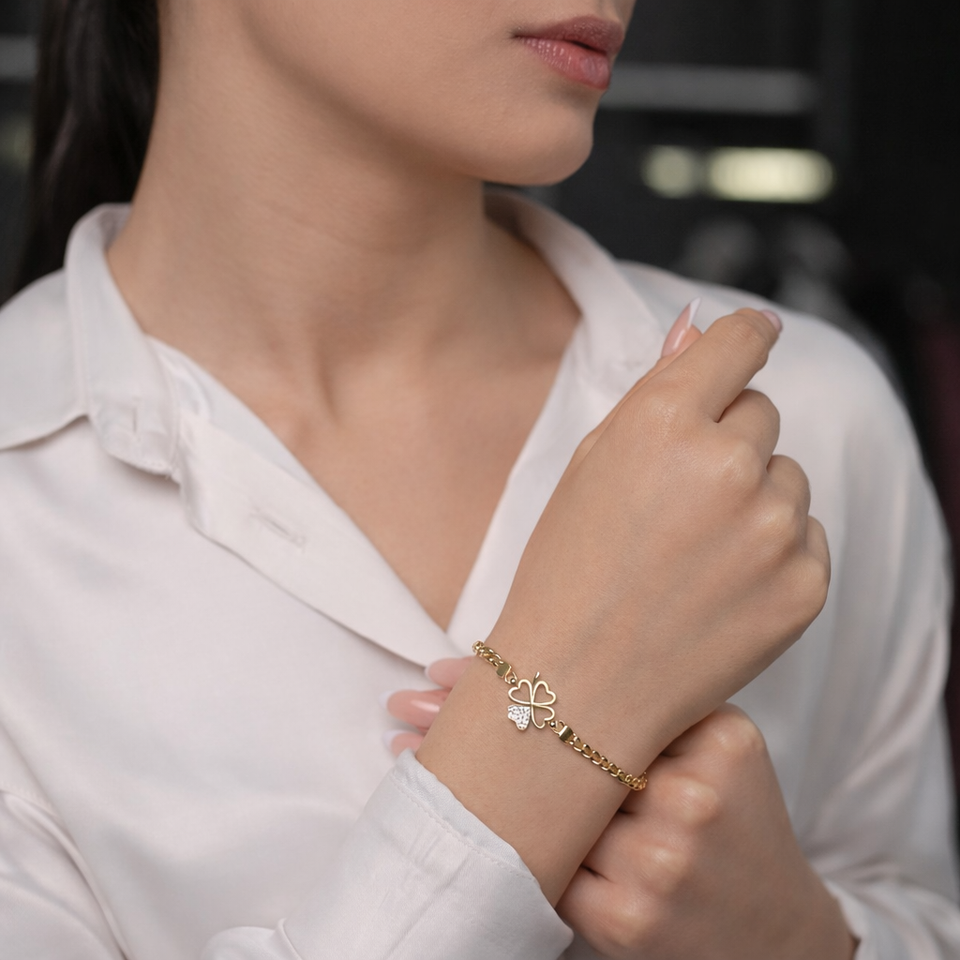 สร้อยข้อมือทองแท้ 14K รูปใบโคลเวอร์สี่แฉก