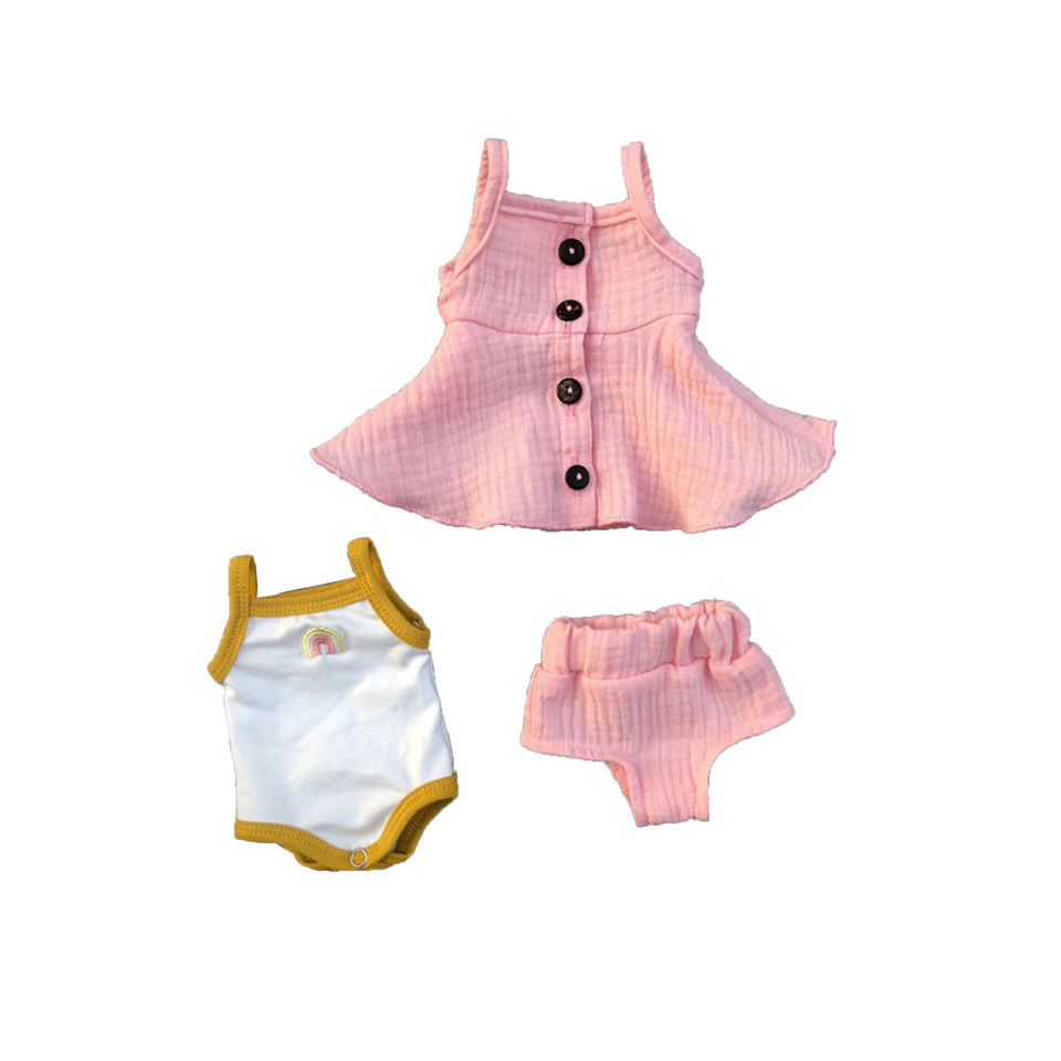 จั๊มสูทตุ๊กตาแฟนซี15นิ้ว,บอดี้คอนไม่มีแขนผ้าฝ้ายสีรุ้งปักเสื้อผ้าตุ๊กตาน่ารักรอมเปอร์