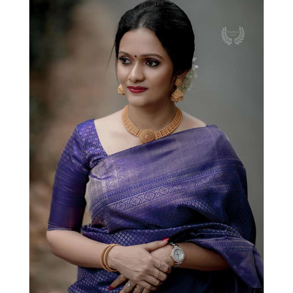 ชุดผ้าไหมนิ่มผ้าส่าหรีสำหรับปาร์ตี้ผ้าส่าหรีสีม่วง