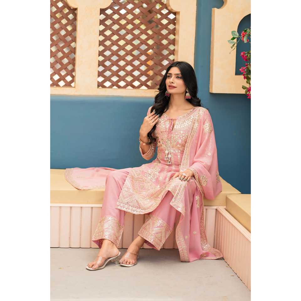 ชุดสูทผู้หญิงสวยแฟนซีชุดเสื้อพลาสโซและ dupatta พร้อมงานปัก