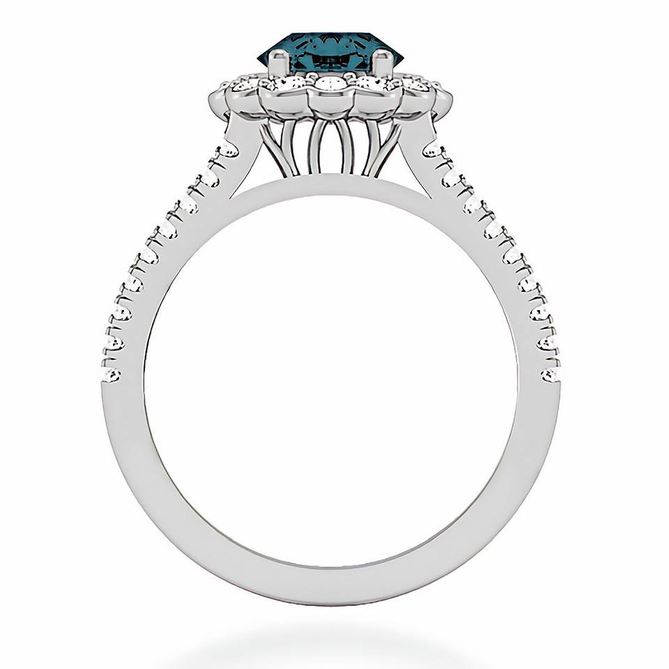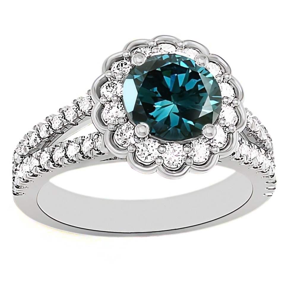 แหวนหมั้นเพชร CVD สีฟ้าแฟนซี 2 กะรัต ทรงฮาโล ประดับทอง 14K สำหรับผู้หญิง