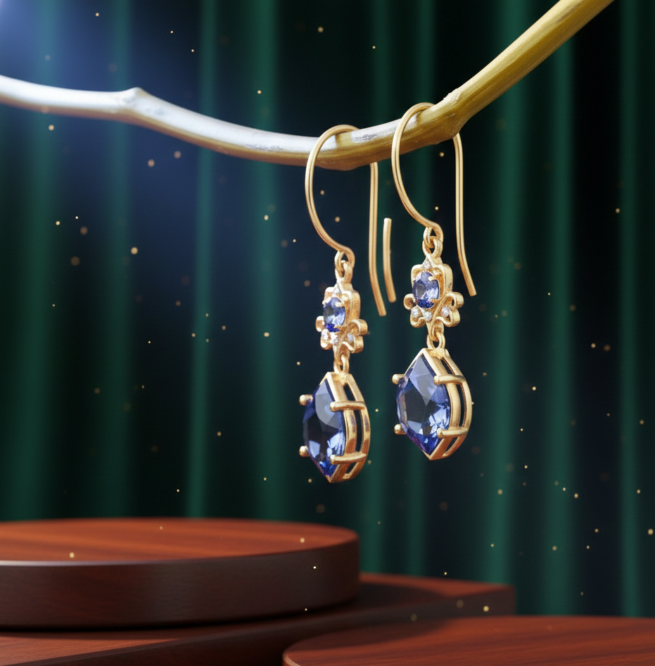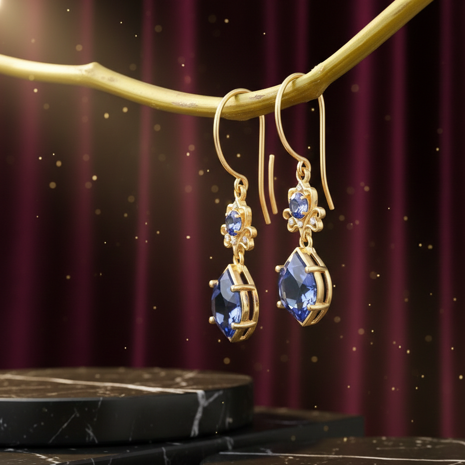 ต่างหู Blue Hydro & CZ Drop