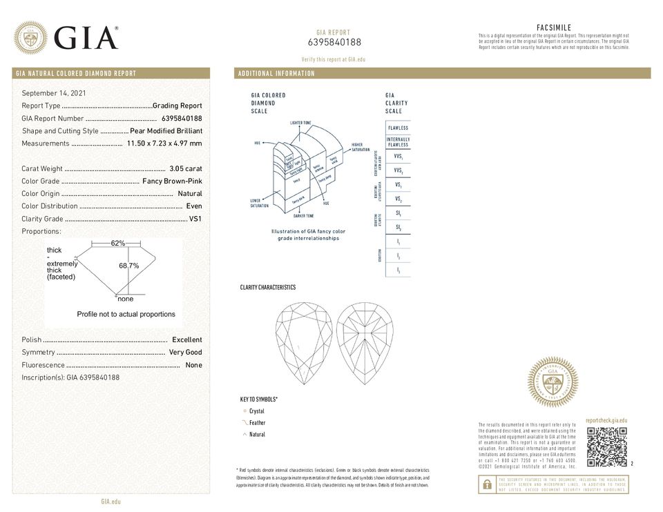ลูกแพร์3.05กะรัตแท้สีชมพูน้ำตาลแฟนซีตัด VS1หลวมเพชร100% พลอยธรรมชาติที่ผ่านการรับรองจาก Gia สำหรับการใช้เครื่องประดับ