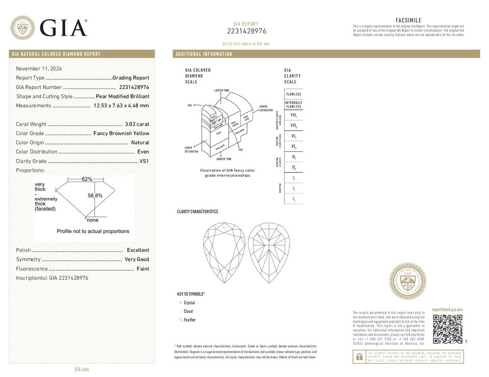 ตัดลูกแพร์แบบปรับได้3.02กะรัตเพชรธรรมชาติประกายเพชรสีเหลืองน้ำตาล VS1เพชรแบบหลวมจากอินเดีย
