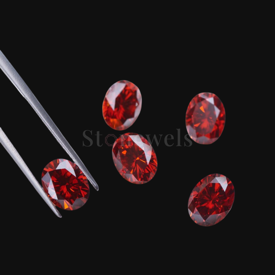 เพชรสังเคราะห์สำหรับปลูกในห้องทดลองธรรมชาติ4CT ได้รับการรับรองจาก3CT 2CT ทรงวงรีสีแดงแฟนซี defvvs 1CT