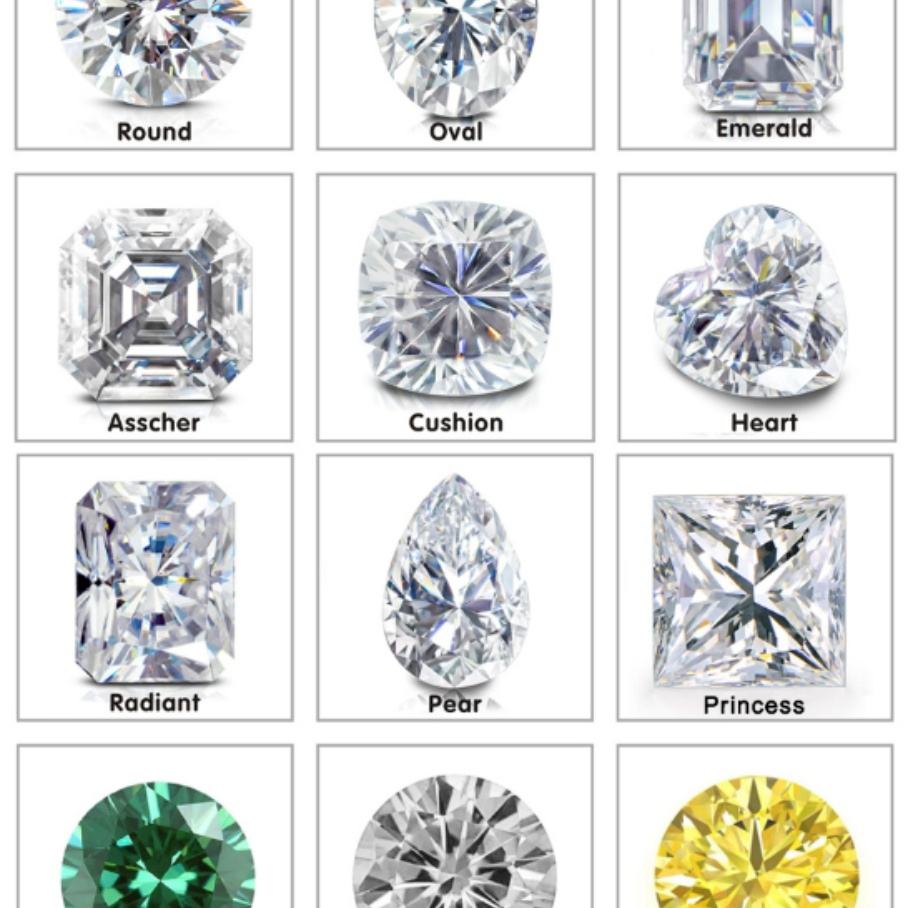Asscher ตัด, เบาะตัด, ตัดมรกต, ตัดหัวใจ, Marquise Cut, ตัดไข่, ตัดลูกแพร์, ตัด Radiant, ตัดรอบที่สว่างสดใส, ล้านล้านตัด, ปริ๊นเซตัด