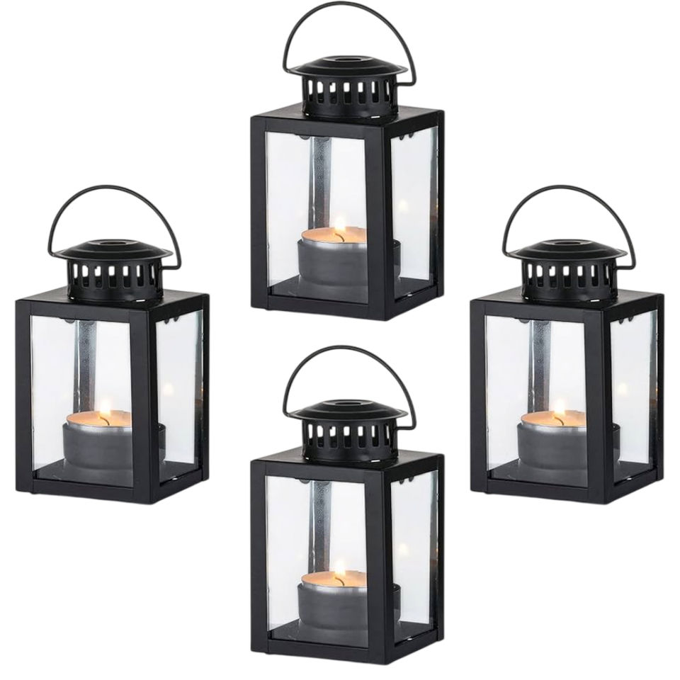 โคมไฟตกแต่งแฟนซีสำหรับสวน โคมไฟแขวนขนาดเล็กสำหรับเทียนทีไลท์ ที่ใส่เทียนทีไลท์สีดำสำหรับงานในร่ม