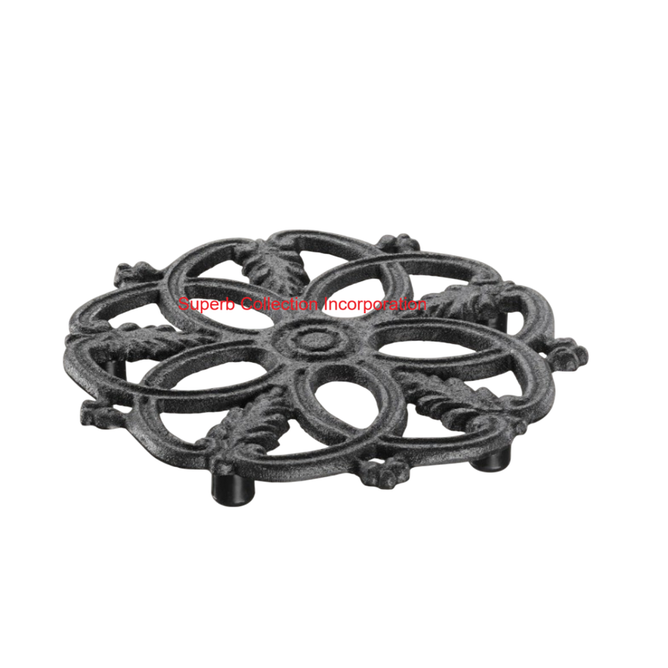 ขาตั้งสามขาทำจากเหล็กสำหรับตกแต่งสไตล์วิคตอเรียแบบแฟนซีสำหรับหม้อร้อนขาตั้งสามขาทำจากยางแผ่นรองบนโต๊ะรับประทานอาหารและห้องครัวสไตล์วินเทจ