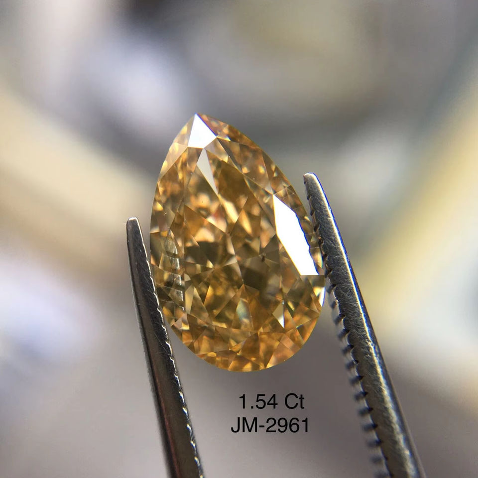 ลูกแพร์สีน้ำตาลเข้มสีเหลืองสดใสตัดได้1.54กะรัตเพชรธรรมชาติที่ผ่านการรับรองจาก Gia มีความคมชัด VS2