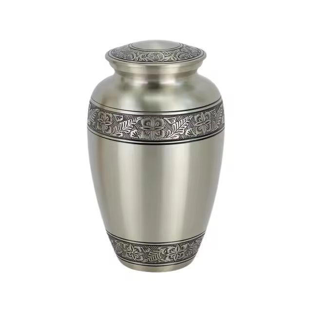 โกศใส่เถ้ากระดูกทำจากอะลูมิเนียมโกศโลหะทำด้วยมือสำหรับผู้ใหญ่ขี้เถ้าศพโกศสีเงินดีไซน์แฟนซี