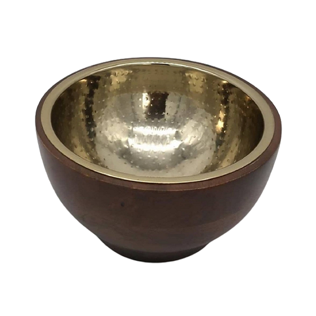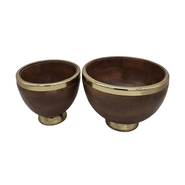 ชุดชามอาหารดีไซน์แฟนซีพร้อมฐานทองเหลือง2ชิ้นชามเสิร์ฟอาหารไม้รูปทรงกลมจากผู้ผลิตในบ้าน
