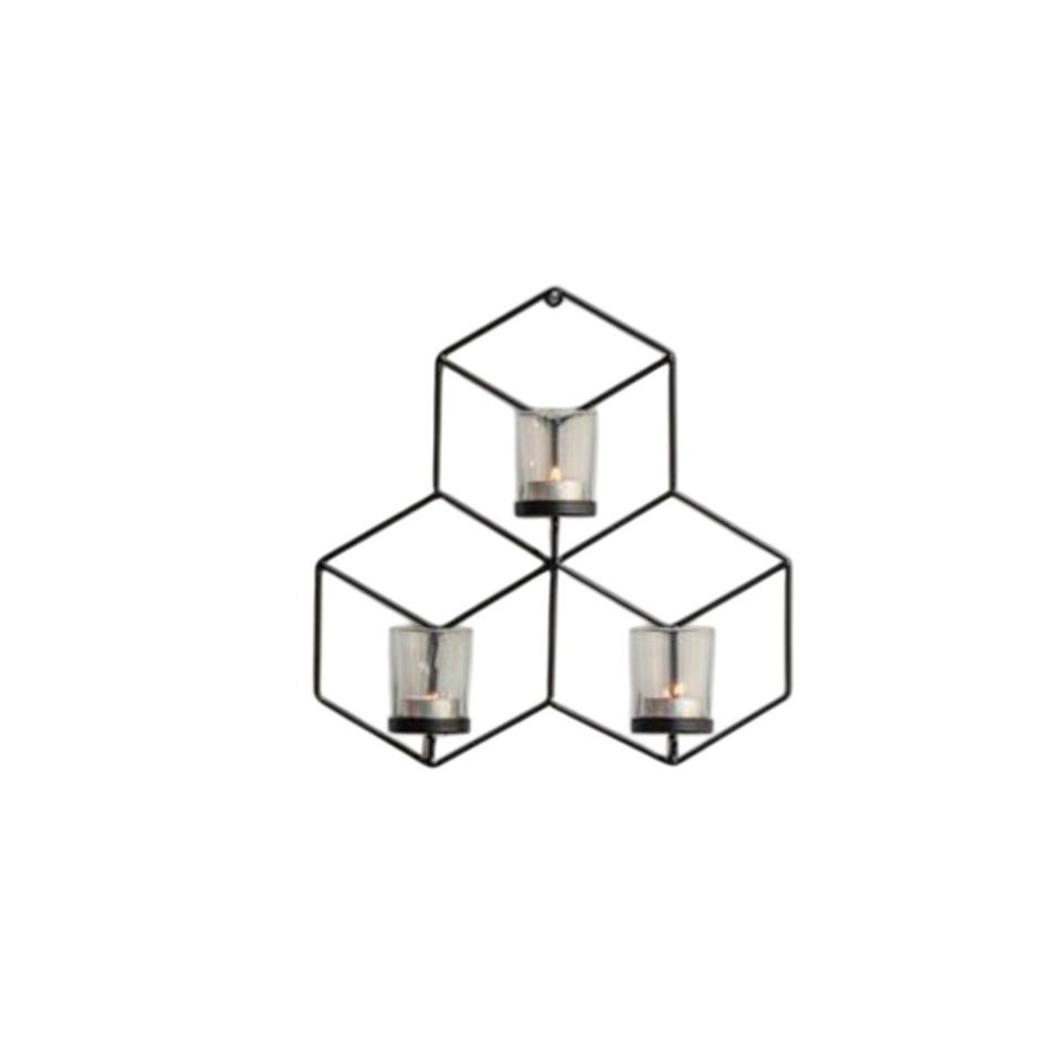 เชิงเทียนติดผนังโลหะรูปทรงเรขาคณิตดีไซน์หรูหรา ที่วางเทียนเหล็กทรงหกเหลี่ยม สำหรับตกแต่งบ้านและงานปาร์ตี้
