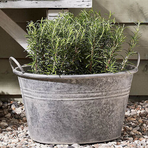 ที่ปลูกต้นไม้เหล็กชุบสังกะสีเป็นมิตรกับสิ่งแวดล้อมพร้อมที่จับสำหรับบ้านและสวนกลางแจ้งสไตล์วินเทจคลาสสิกดีไซน์แฟนซี