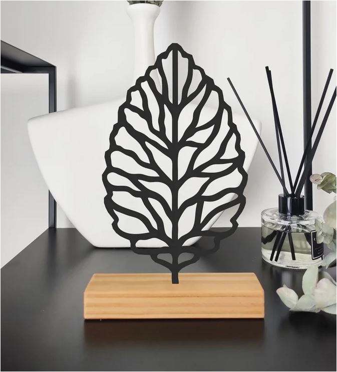 ชื่อสินค้า:ชั้นวางของดีไซน์หรูรูปทรงใบไม้ ฐานโลหะสีดำและไม้