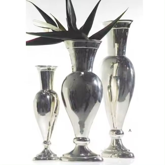 ชุดแจกันดอกไม้สีเงินสามใบดีไซน์แบบแฟนซีของตกแต่งบ้านโรงแรมแจกันโลหะสำหรับตกแต่งโต๊ะโรงแรม