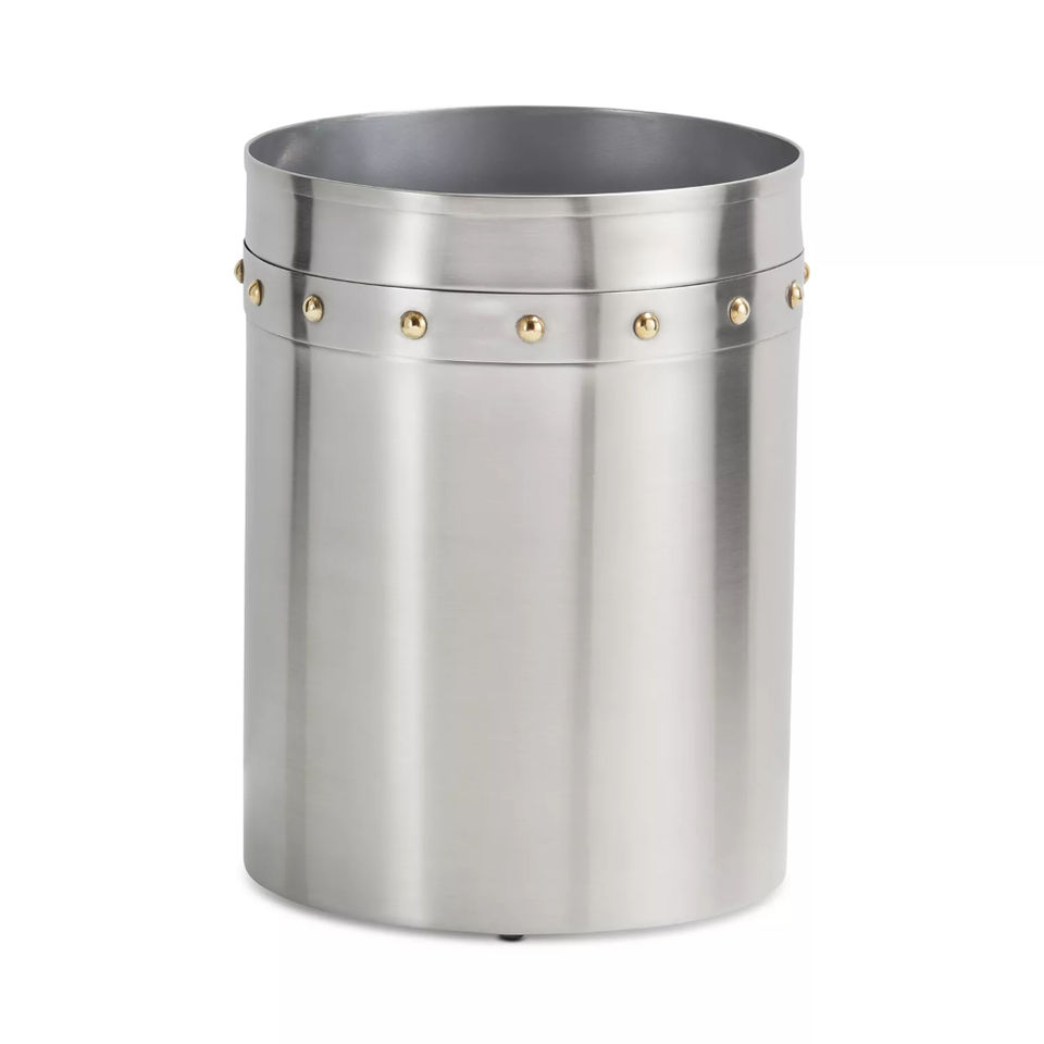ถังขยะสแตนเลสแบบเจาะรู ดีไซน์สวยงาม เป็นมิตรกับสิ่งแวดล้อม ฝาเปิดด้านบน ถังขยะโลหะดีไซน์สร้างสรรค์ สำหรับโรงแรมและบ้าน