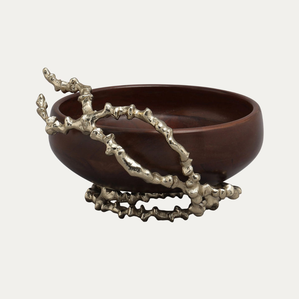 ชามไม้อะคาเซียทำด้วยมือชามสลัดไม้อะคาเซียทำด้วยมืออลูมิเนียมชุบทองแบบทันสมัยดีไซน์ภายนอกสำหรับงานแต่งงานดีไซน์แฟนซี
