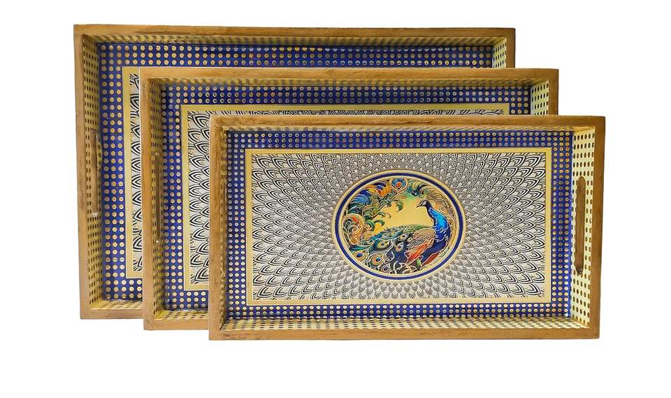 ชุดถาดเสิร์ฟไม้ดีไซน์หรู 3 ชิ้น ลายอูฐดิจิทัล สำหรับเสิร์ฟของหวาน ราคาประหยัด