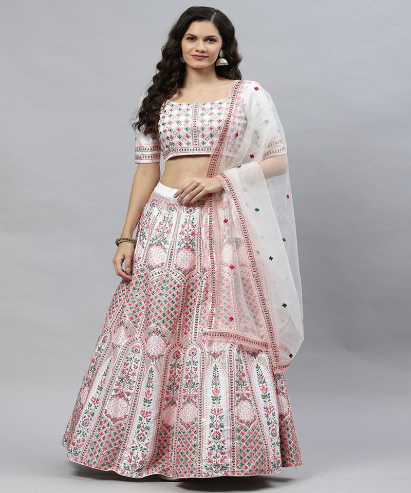 Georgette lehenga choli ดีไซเนอร์แฟนซีกับ dupatta การเย็บปักถักร้อยลำดับงานอินเดียและปากีสถานเสื้อผ้าชาติพันธุ์ apparelgarment