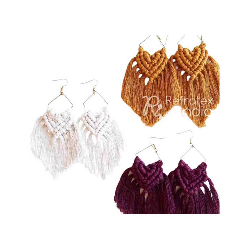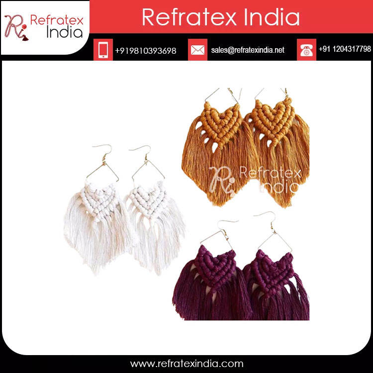 เครื่องประดับต่างหูแฟนซีผ้าฝ้าย Macrame