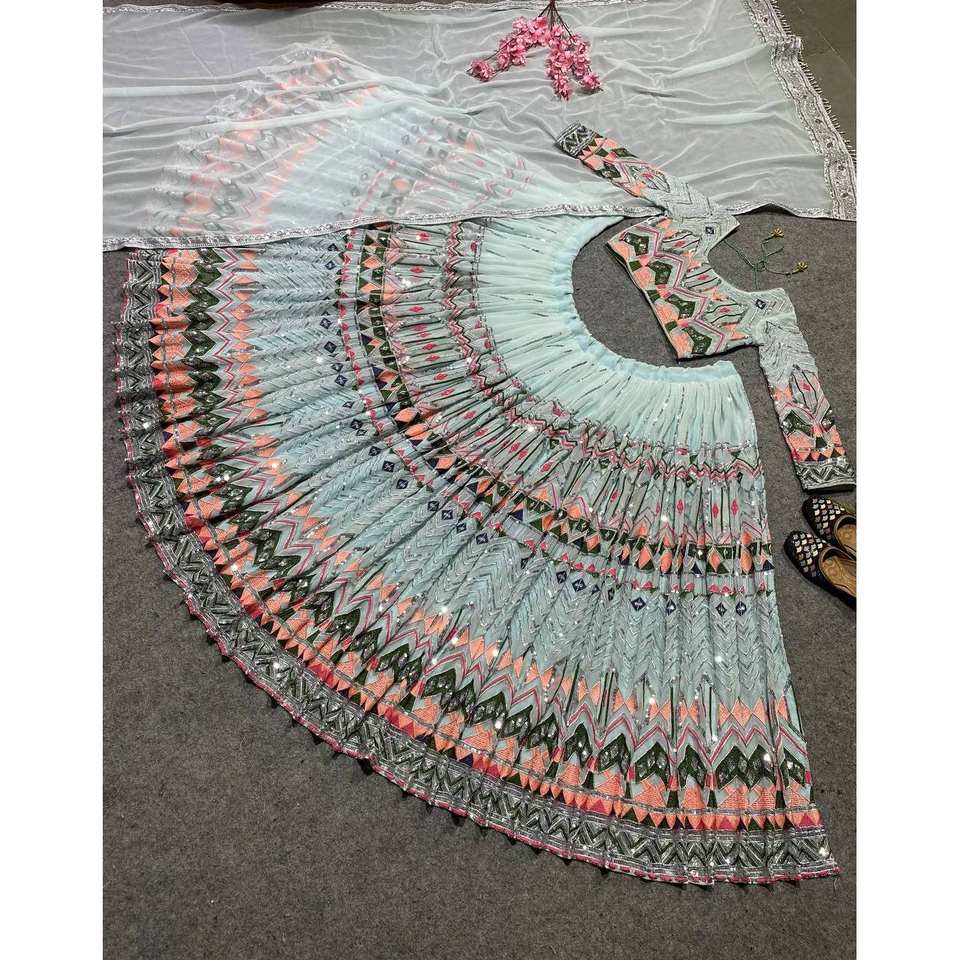 ชุดราตรีแฟนซีชุดปาร์ตี้สวม lehenga choli กับการทำงานน้อย