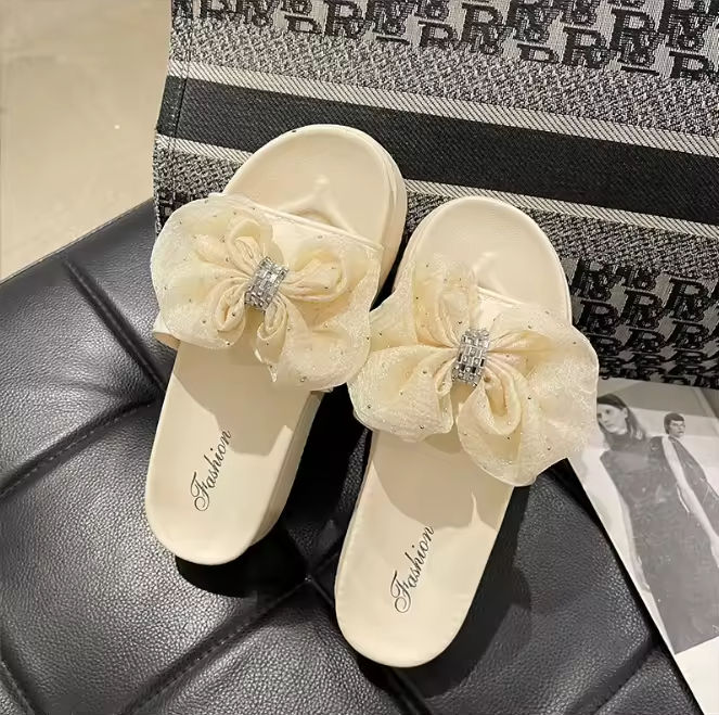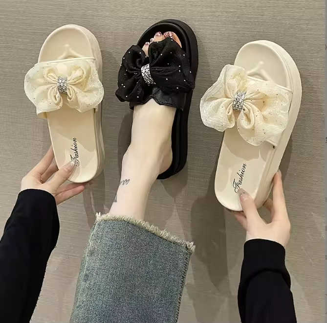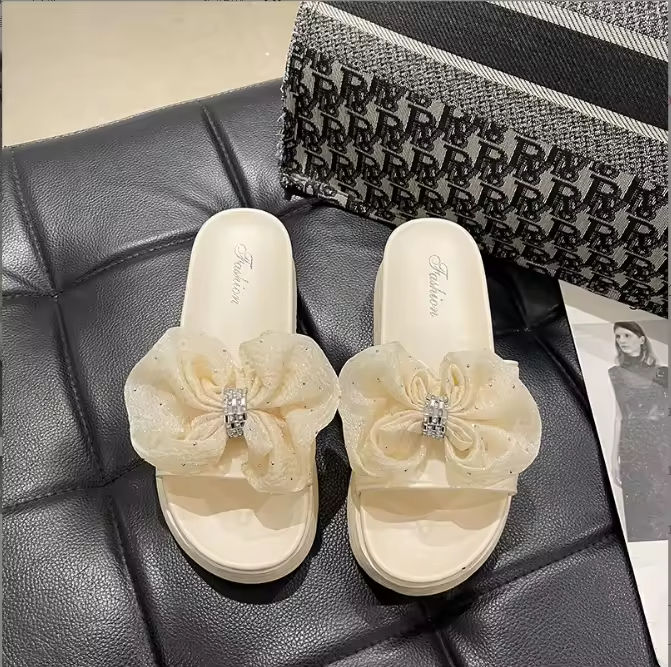 Fancy Floral Bow Sandals Slippers for Women Wearing Summer Fashion Trend Slippers Platform Elevating Beach Slippers