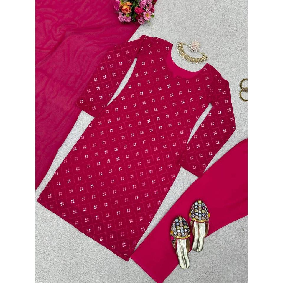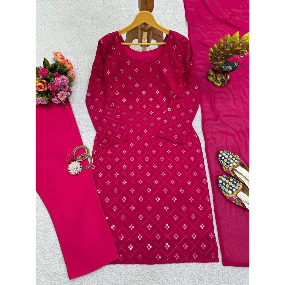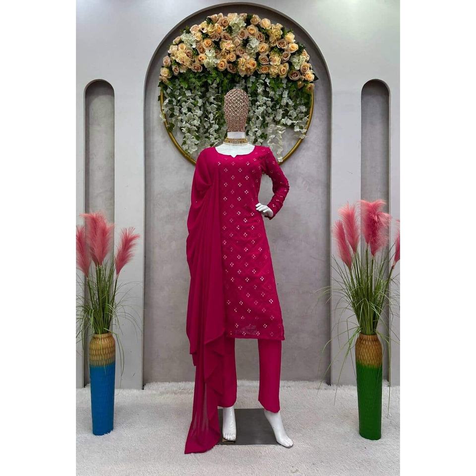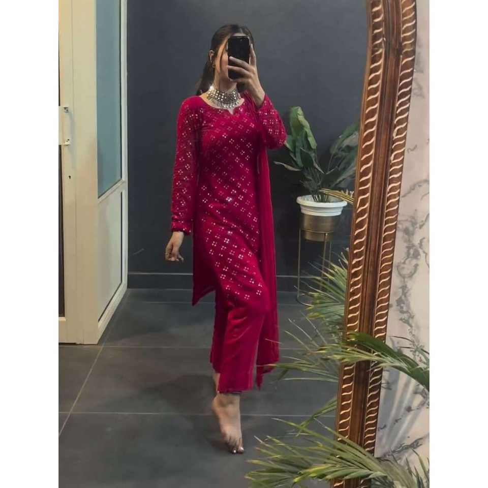 ชุดคอลเลกชั่นผ้าจอร์เจียแบบมีลำดับแนวแฟนซีชุดอินเดียและปากีสถาน-ด้านบนด้านล่างและ dupatta