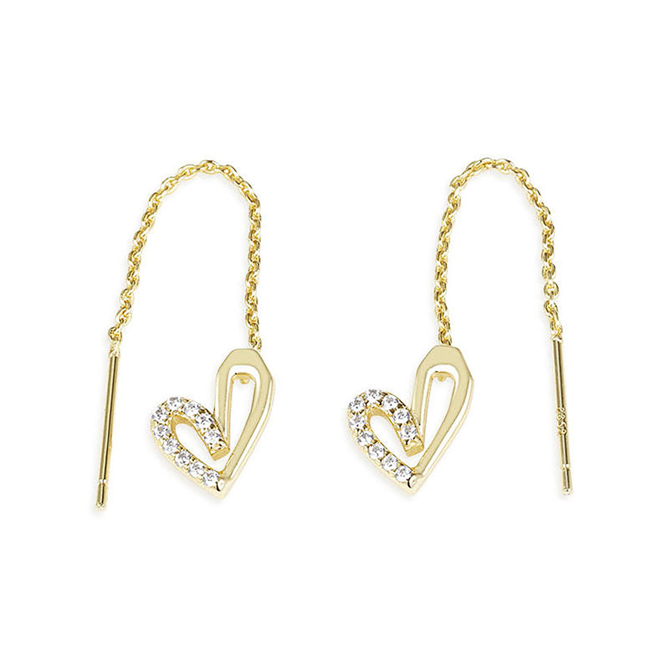 ชื่อผลิตภัณฑ์:ต่างหูแบบห้อยเกลียวทรงหัวใจสีทอง10K
