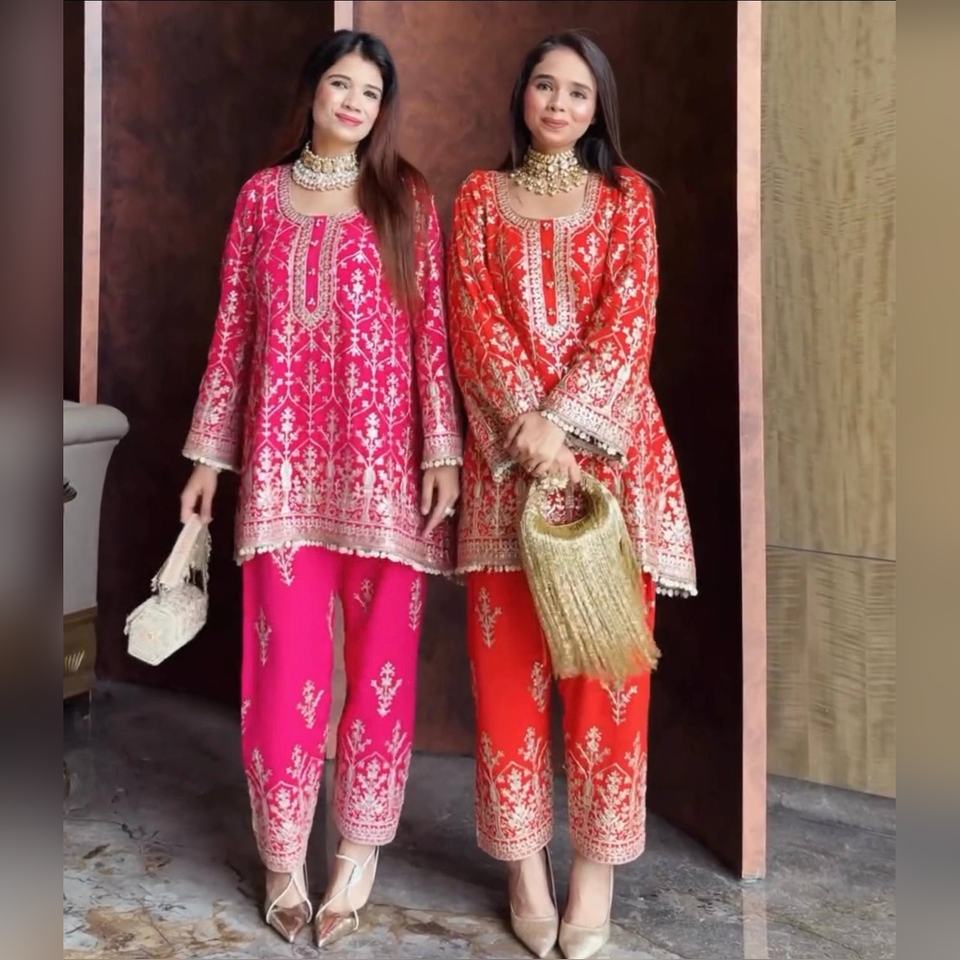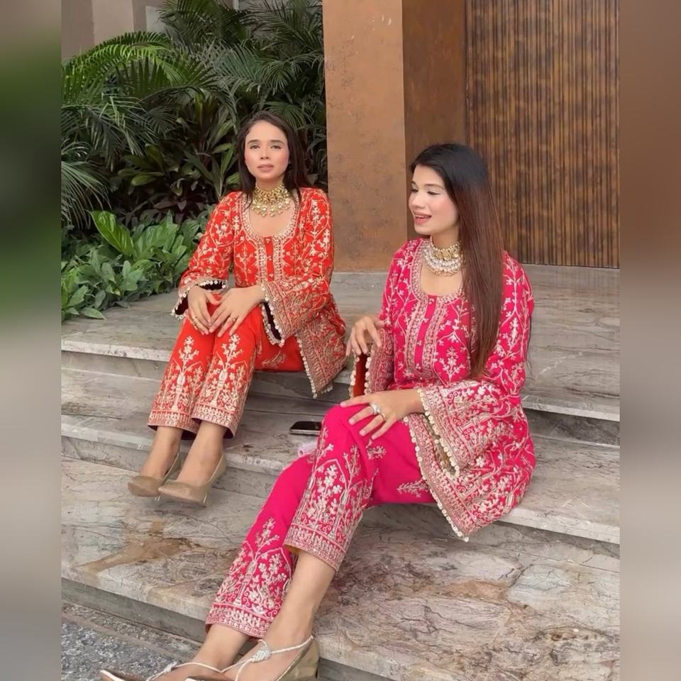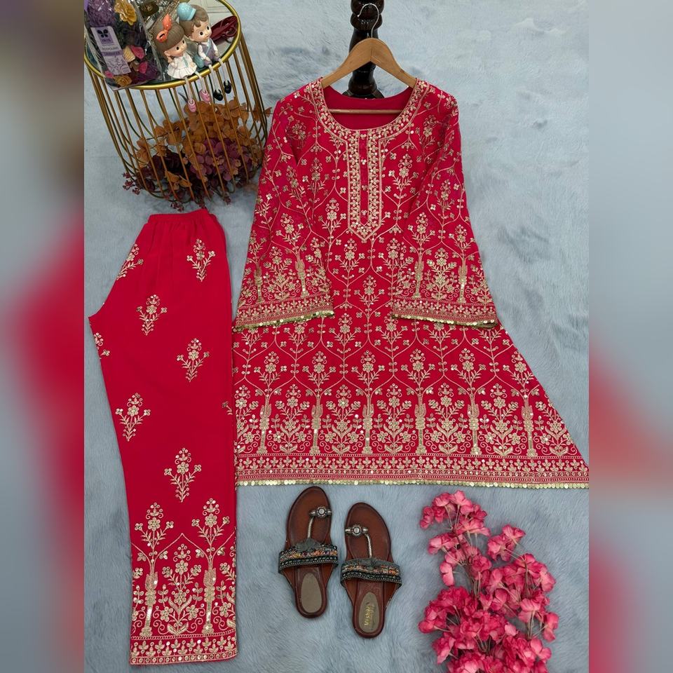 ชุดคุर्ติ ชารารา และผ้าคลุมไหล่ 3 ชิ้น ผ้าจอร์เจตต์เนื้อหนา หรูหรา พร้อมงานปักมือ ขายส่งราคาถูก