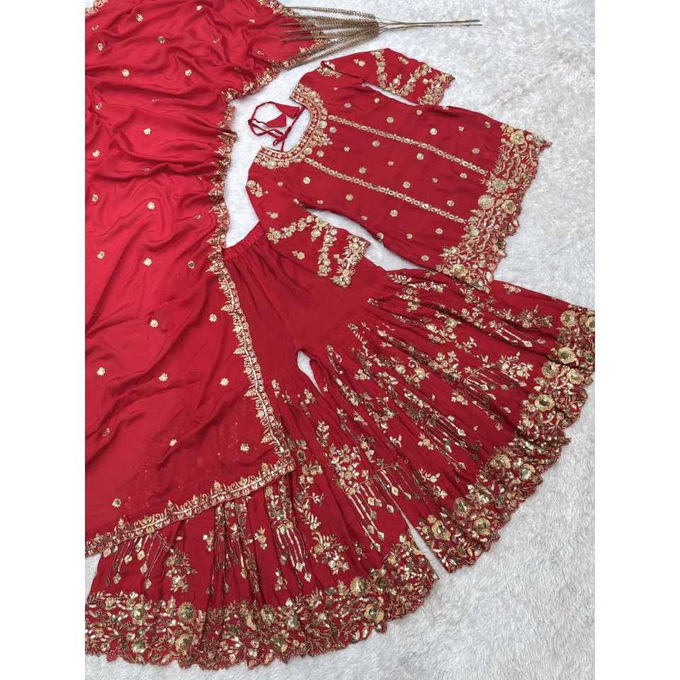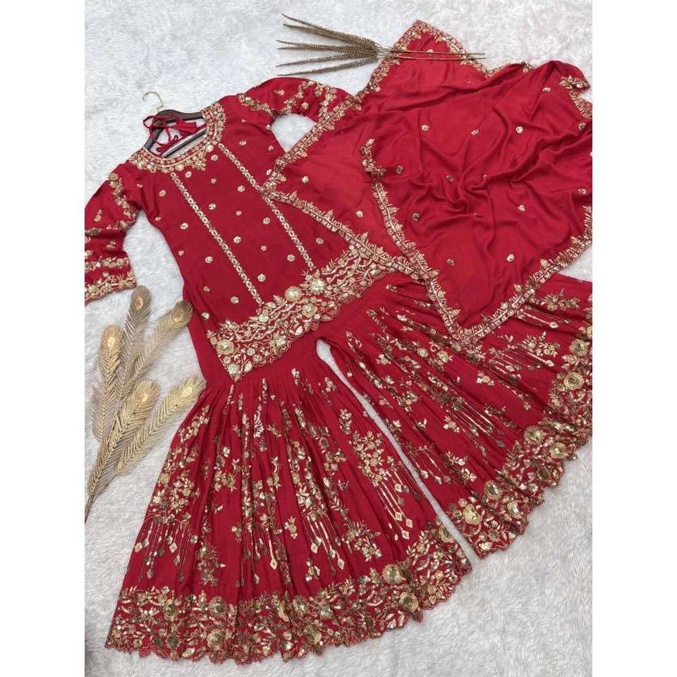 ชุดชาราราและผ้าคลุมไหล่แบบอินเดียและปากีสถานสุดหรู พร้อมงานปักและประดับเลื่อม