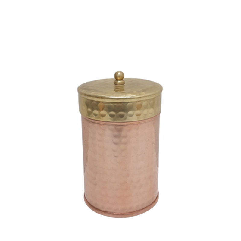 กล่องเหล็กทรงกลมทำจากทองแดงแฟนซีพร้อมฝาปิดกล่องน้ำตาลและชาขนาดใหญ่สำหรับเครื่องครัว