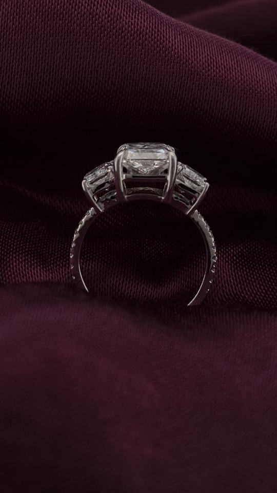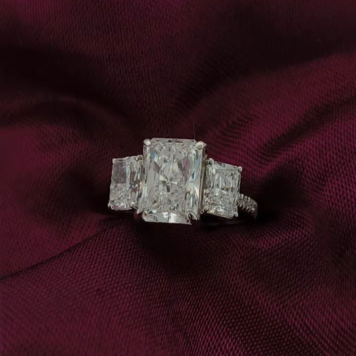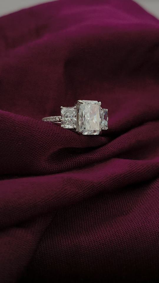 แหวนทองคำแท้ 14K ประดับเพชรแล็บโกรนสีขาวเรเดียนท์ พร้อมเพชรสองเม็ดด้านข้าง สำหรับสุภาพสตรี