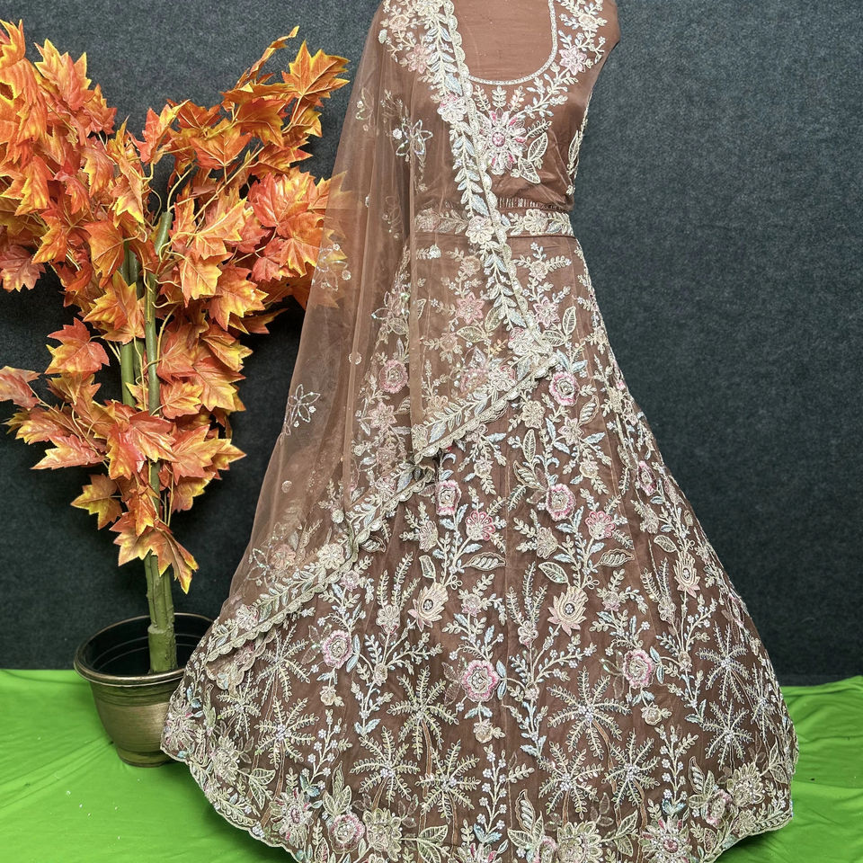 Lehenga choli ที่ทันสมัยแฟนซีสำหรับงานเลี้ยงฤดูหนาว/ฤดูร้อนและงานแต่งงานด้วยการปักเลื่อมงาน zari และผ้าตาข่ายพรีเมี่ยม