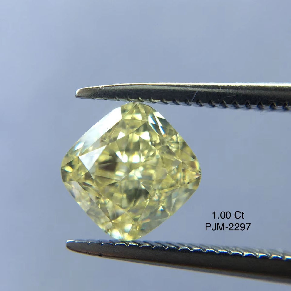 เบาะรองนั่ง100% สีเหลืองอ่อนจากธรรมชาติของแฟนซีตัด1.00กะรัต VS2เกรด Gia ได้รับการรับรองคุณภาพสูงทรงหลวมอัญมณีแฟนซี