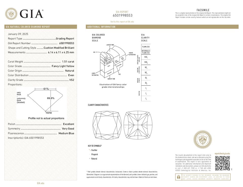 เบาะเพชรสีเหลืองอ่อนขนาดใหญ่1.51กะรัตสวยงามแฟนซีตัด VS1เพชรหลวมธรรมชาติที่ผ่านการรับรองจากอินเดียเพื่อใช้เป็นเครื่องประดับ