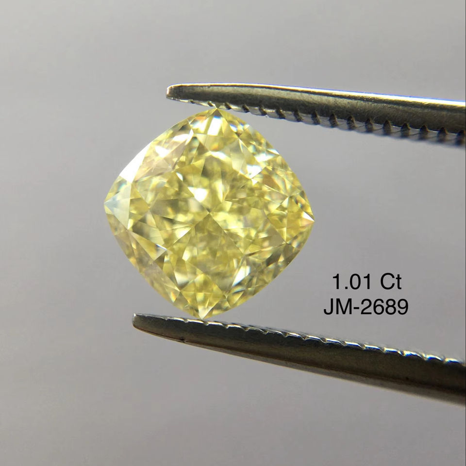 เบาะเพชรกะรัตสีเหลืองอ่อนแฟนซีตัด1.01กะรัต100% เพชรหลวมธรรมชาติจากอินเดียถ้าความชัดเจน