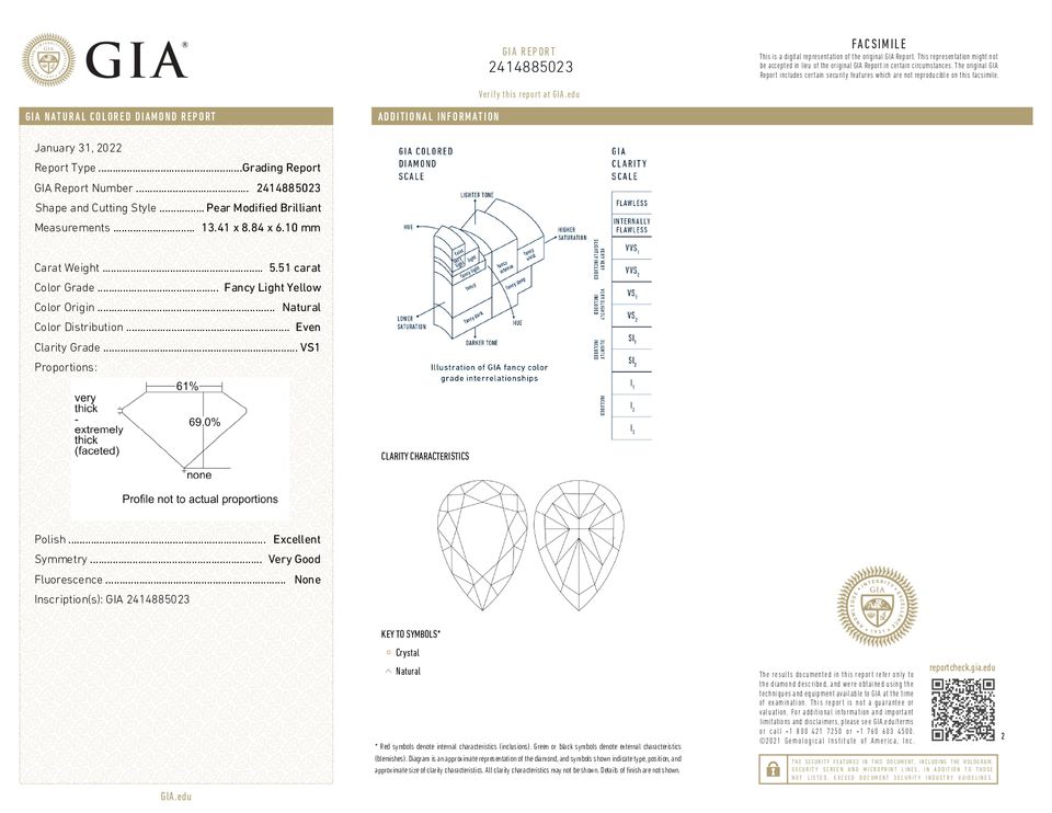เพชรสีเหลืองอ่อนแฟนซี5.51กะรัตได้รับการรับรองจาก Gia Vs1ตัดเพชรหลวมเพชรแฟนซีระดับพรีเมียมสำหรับเครื่องประดับแฮนด์เมด